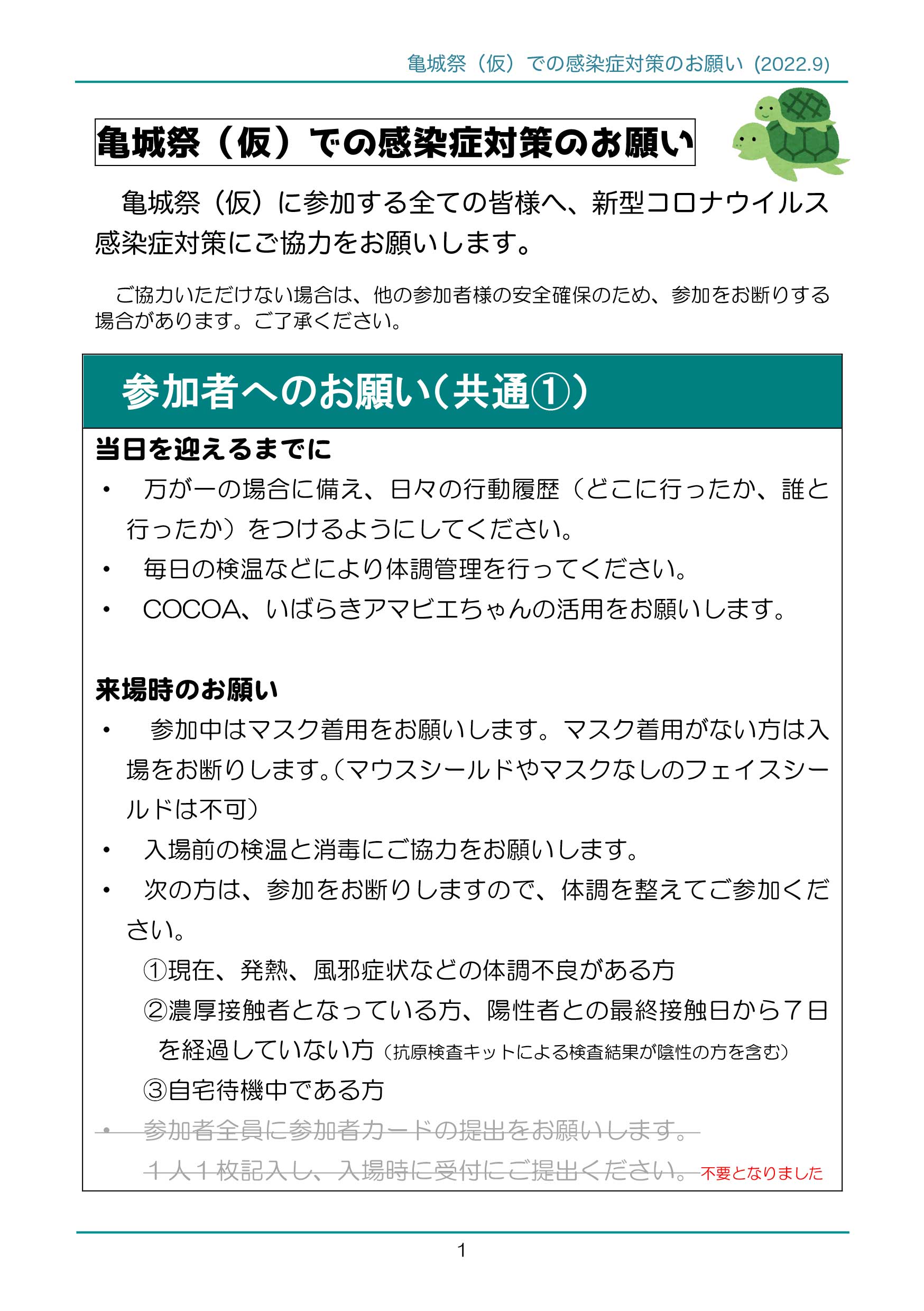 亀城祭(仮)に参加する全ての皆様へのお願いです。