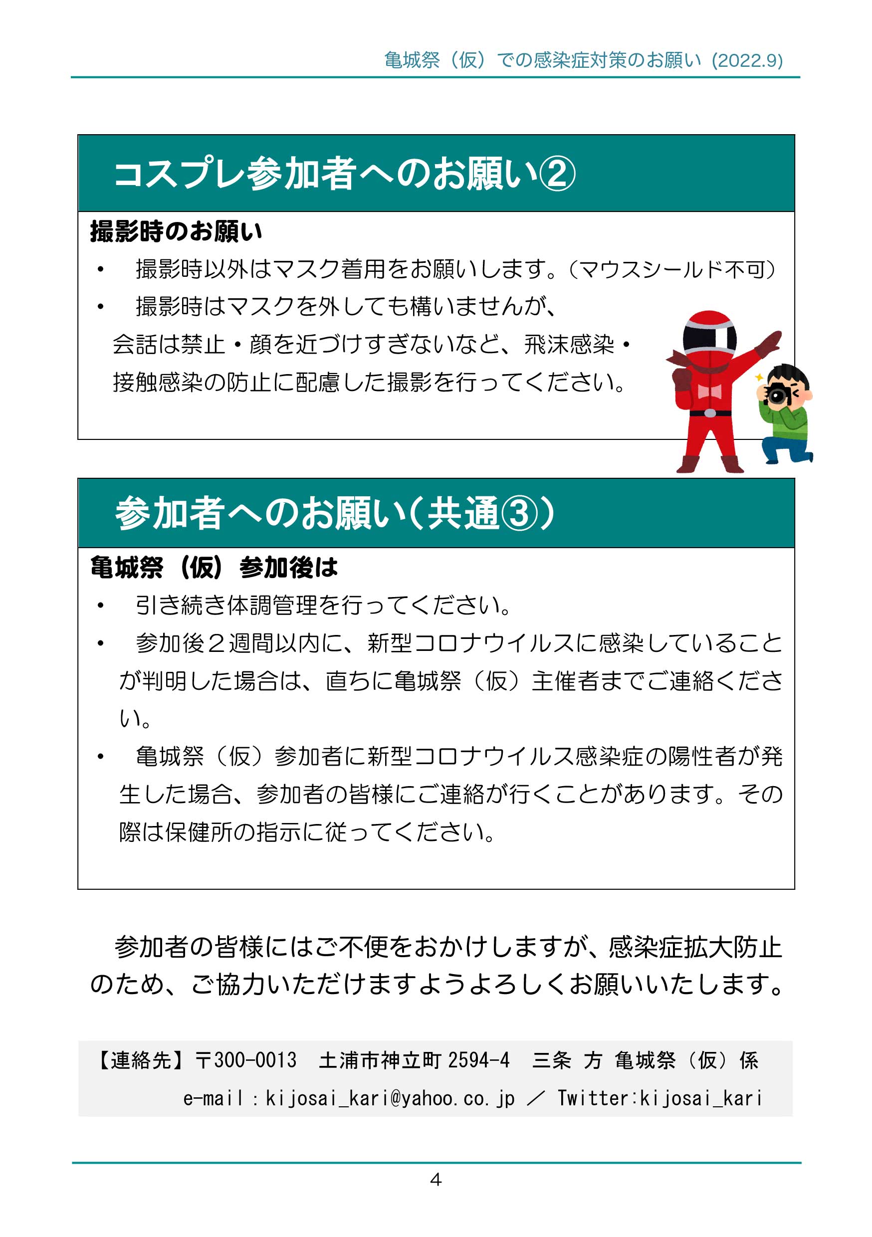 詳しくは、添付の「亀城祭(仮)での感染症対策のお願い」をご覧ください。